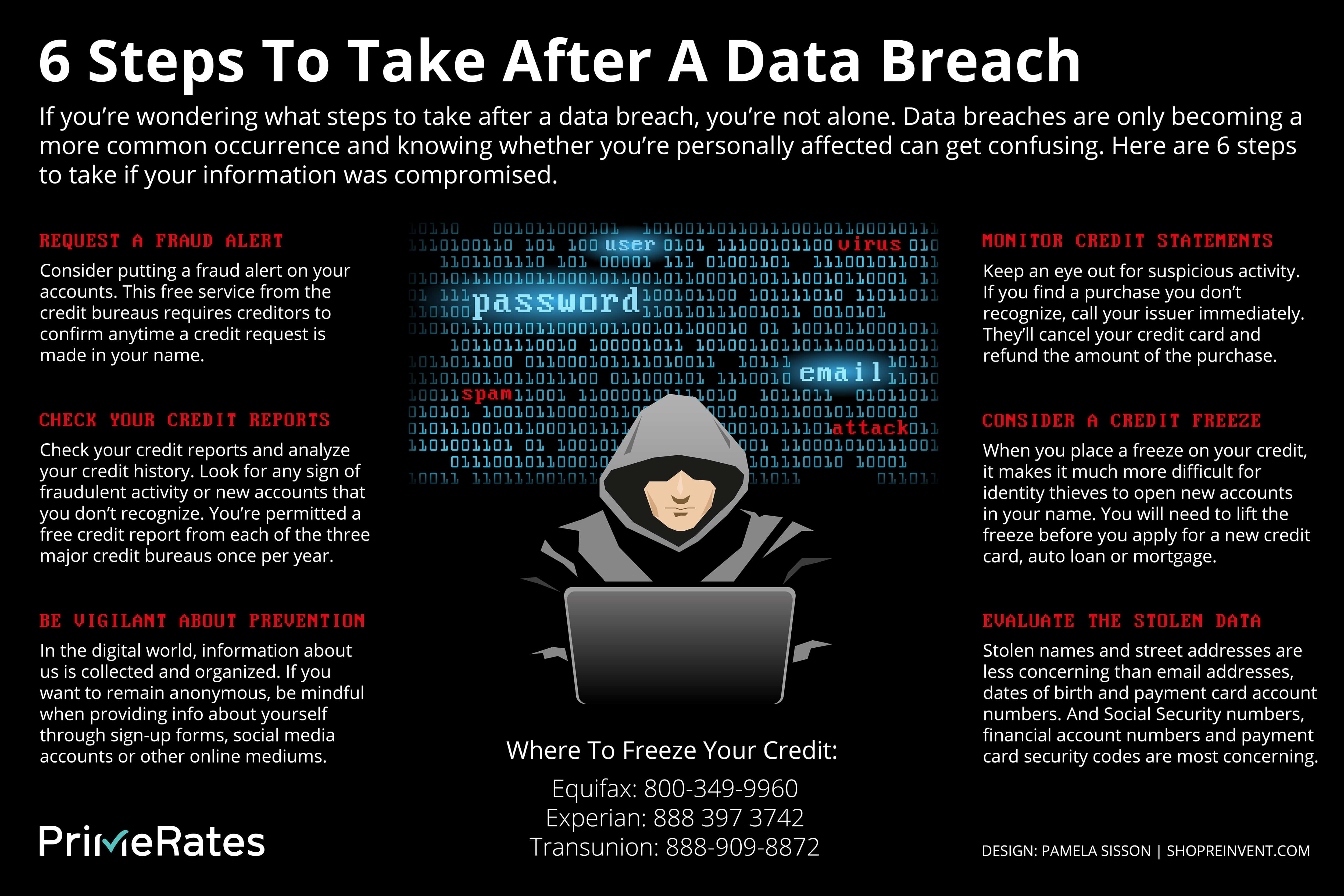 Take the steps outlined in the data breach infographic below to safeguard your information.